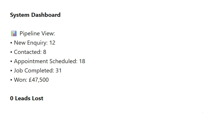 Every enquiry is captured. Website forms, calls, messages - all logged instantly into your system.