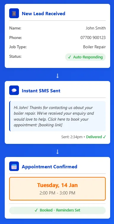 Appointments booked automatically. Jobs go straight into your calendar. Reminders sent. No-shows prevented.